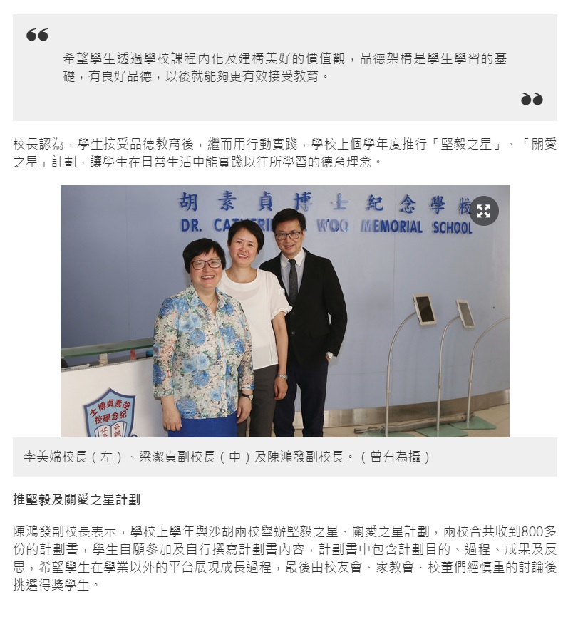 胡素貞博士紀念學校重視德育-香港經濟日報專訪